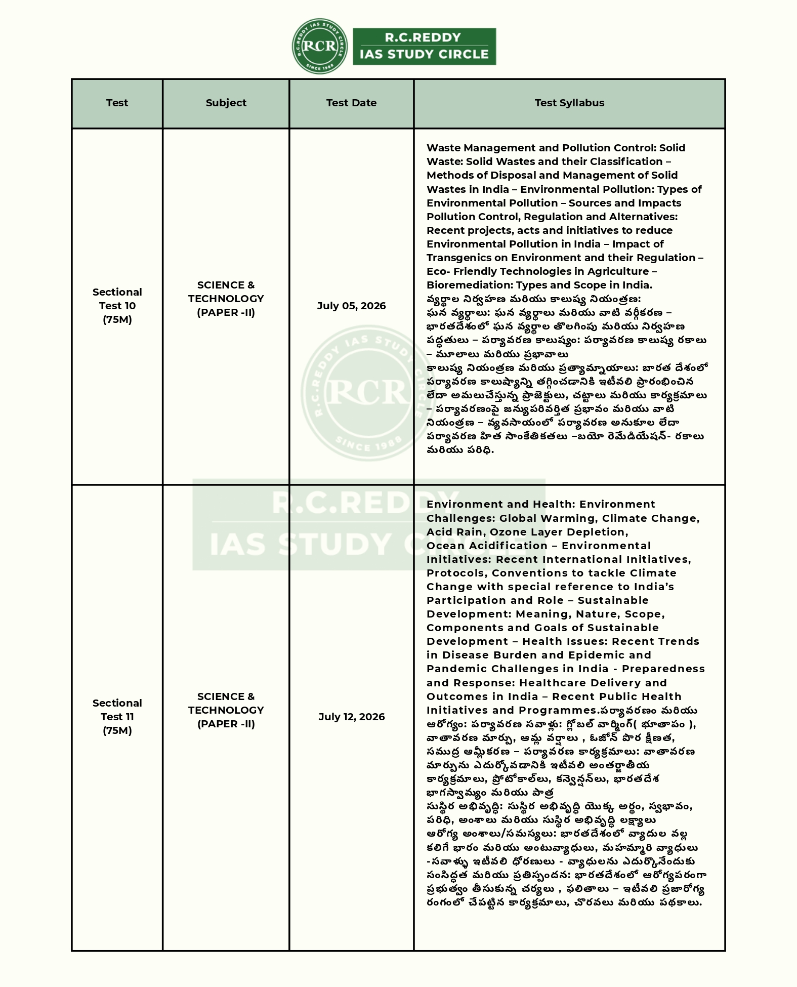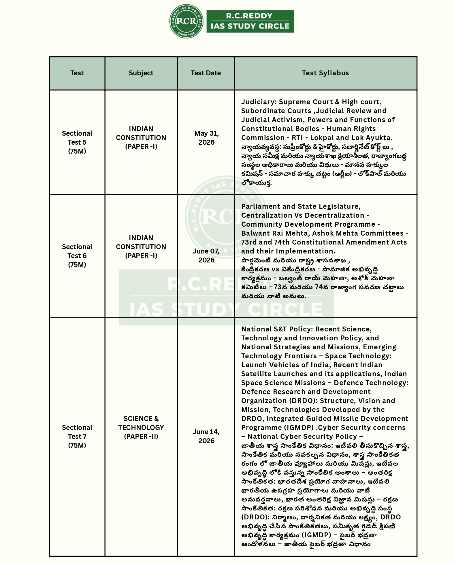 * ప్రతి టెస్ట్ నిర్ణయించిన రోజున ఉదయం 10:00 గంటలకు అప్లోడ్ చేయబడుతుంది